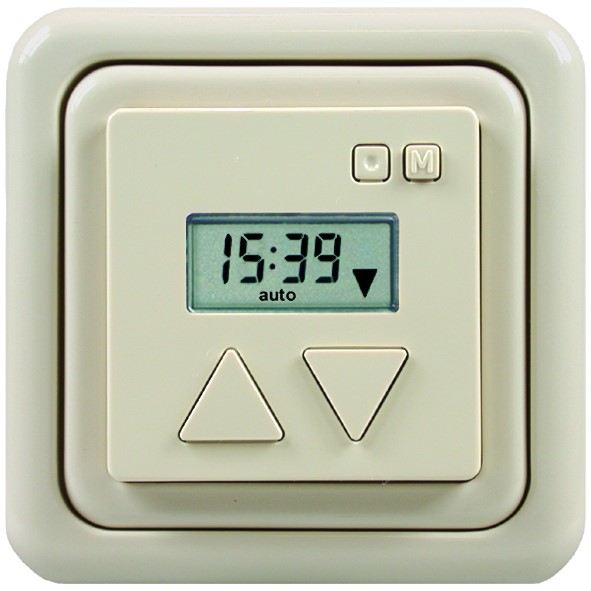 - Eine AUF- und eine AB-Zeit pro Tag programmierbar.