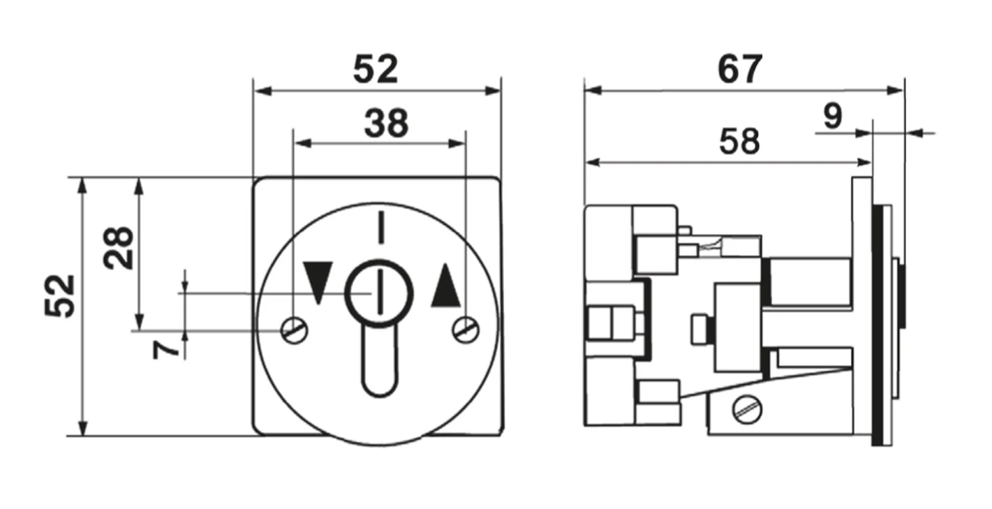 WTS - Einbau/Fronttafel - Schlüsseltaster mit 2 Tast-Kontakt, 2-polig Wechsler AB/AUF
