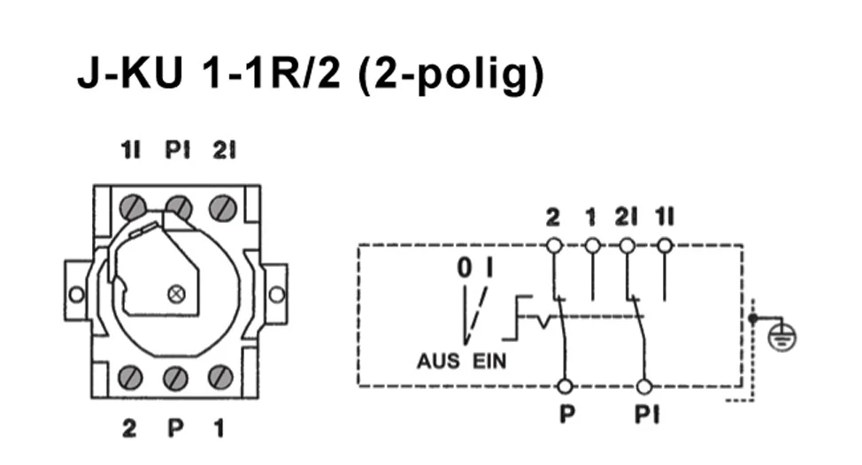 J-KU 1-2R/2 UP Schlüsselschalter mit 2 Rast-Kontakten, 2-polig AB/AUF