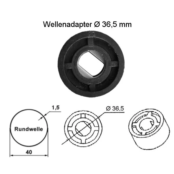 WTS - Adapter DM-A40R-1.5 40 mm Rundwelle 1,5mm für Mini-Rohrmotoren  Ø 35 mm, Serie DM / DMF / ME