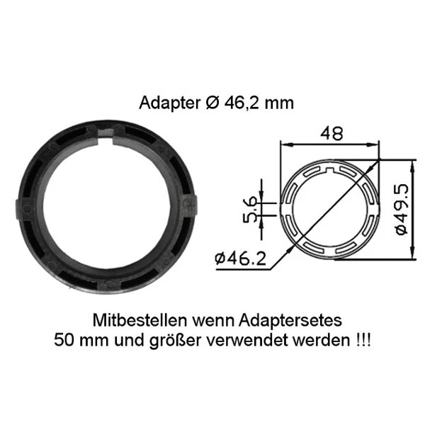 Ermöglicht die Verwendung aller Standard-Adaptersets (50 mm und größer)