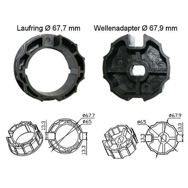 WTS - Adapterset DM-A70R : 70 mm Rundwelle mit Nut für alle Rohrmotoren Ø 45 mm, Serie