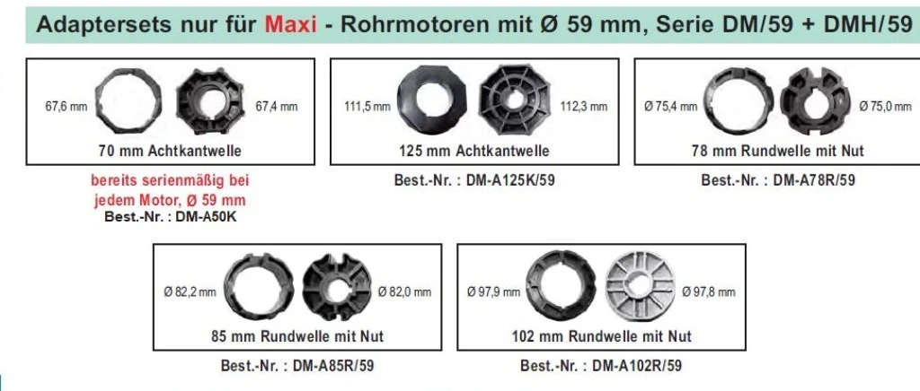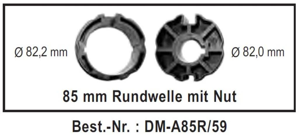 WTS - Adapterset DM-A85R/59 : 85 mm Rundwelle mit Nut nur für Maxi  und NHK- Rohrmotoren Ø 59 mm, Serie DM/59 + DMH/59