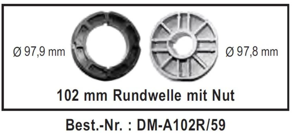 WTS - Adapterset DM-A102R/59 : 102 mm Rundwelle mit Nut nur für Maxi  und NHK- Rohrmotoren Ø 59 mm, Serie DM/59 + DMH/59