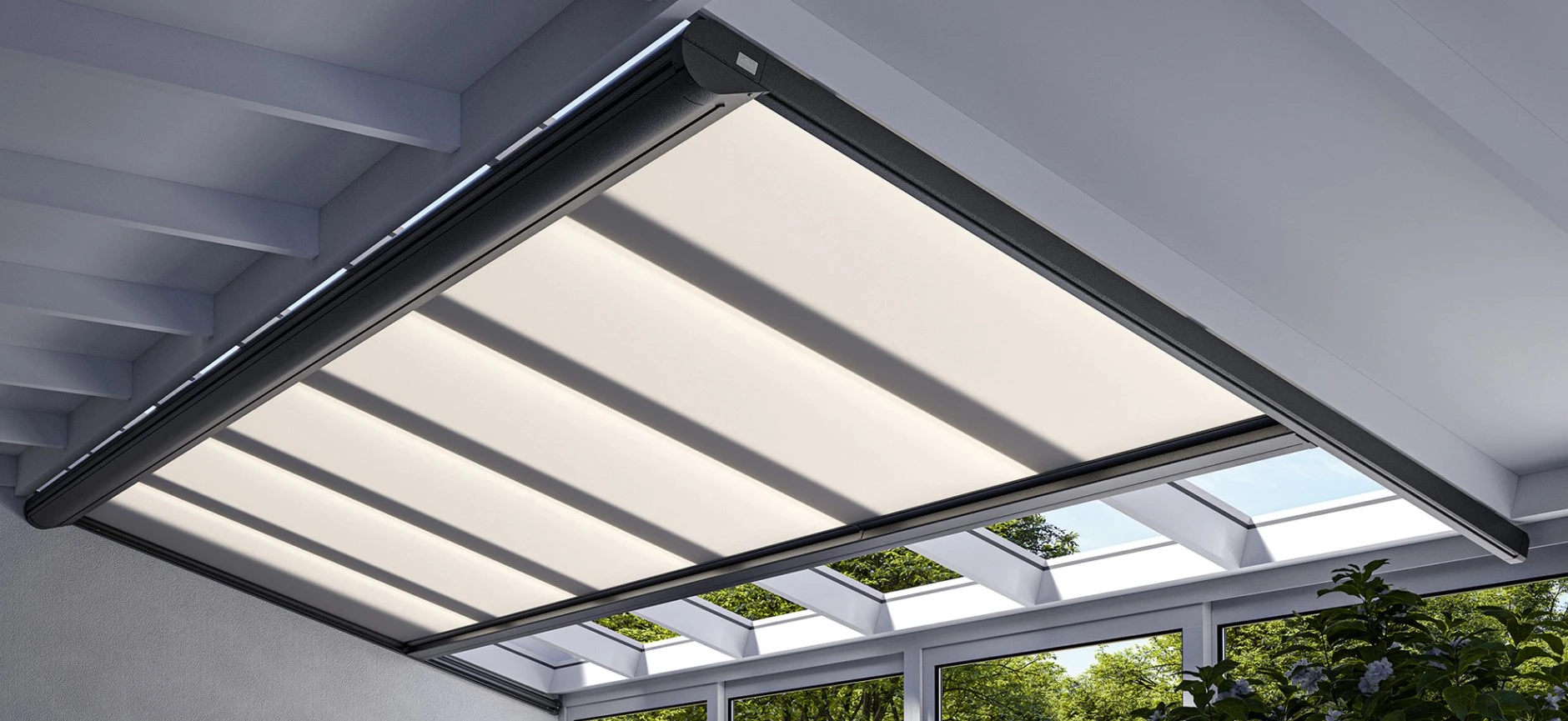 Die Zip-Markise für Glasdach und Wintergarten.