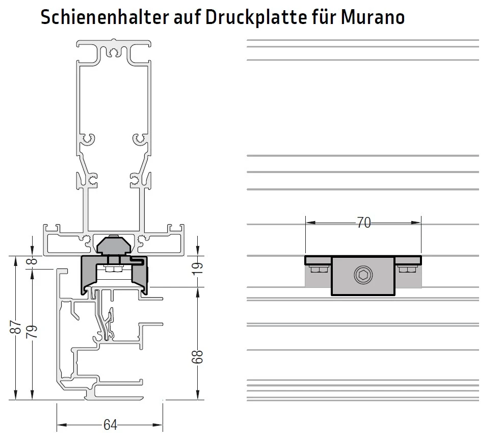 Lieferumfang: 1 x Druckplatte inkl. Schienenhalter für Murano