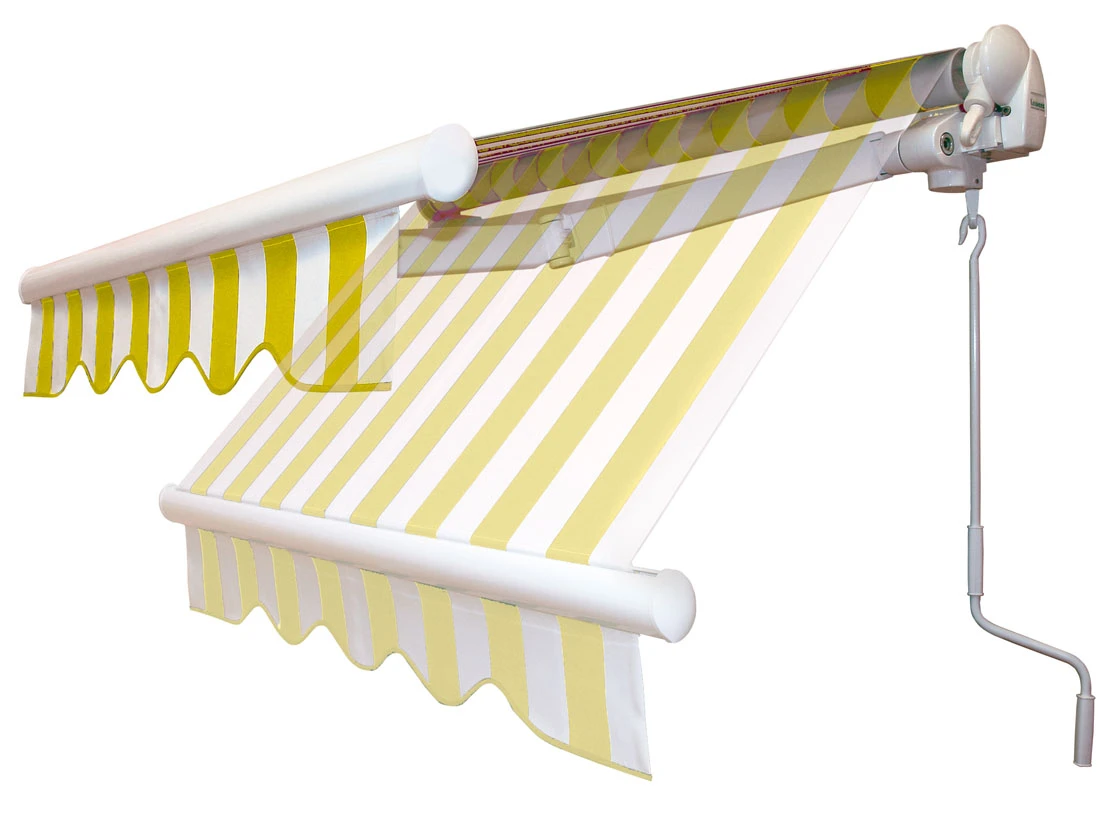 • Lieferung standardmäßig mit Kurbelbedienung und bespannt mit Acrylstoff