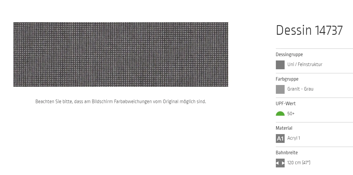 Markisentuch Uni - Feinstruktur, Granit - Grau UPF 50+, Acryl 1