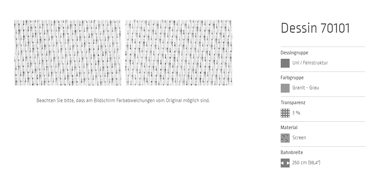 Markisentuch Screen-Gewebe, Granit - Grau Transparenz 3 Prozent, Stoff-Nr. 70101