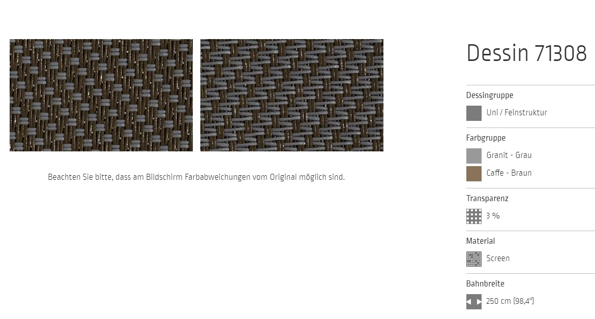 Markisentuch Screen-Gewebe, Granit - Grau / Caffe - Braun, Transparenz 3 Prozent, Stoff-Nr. 71308