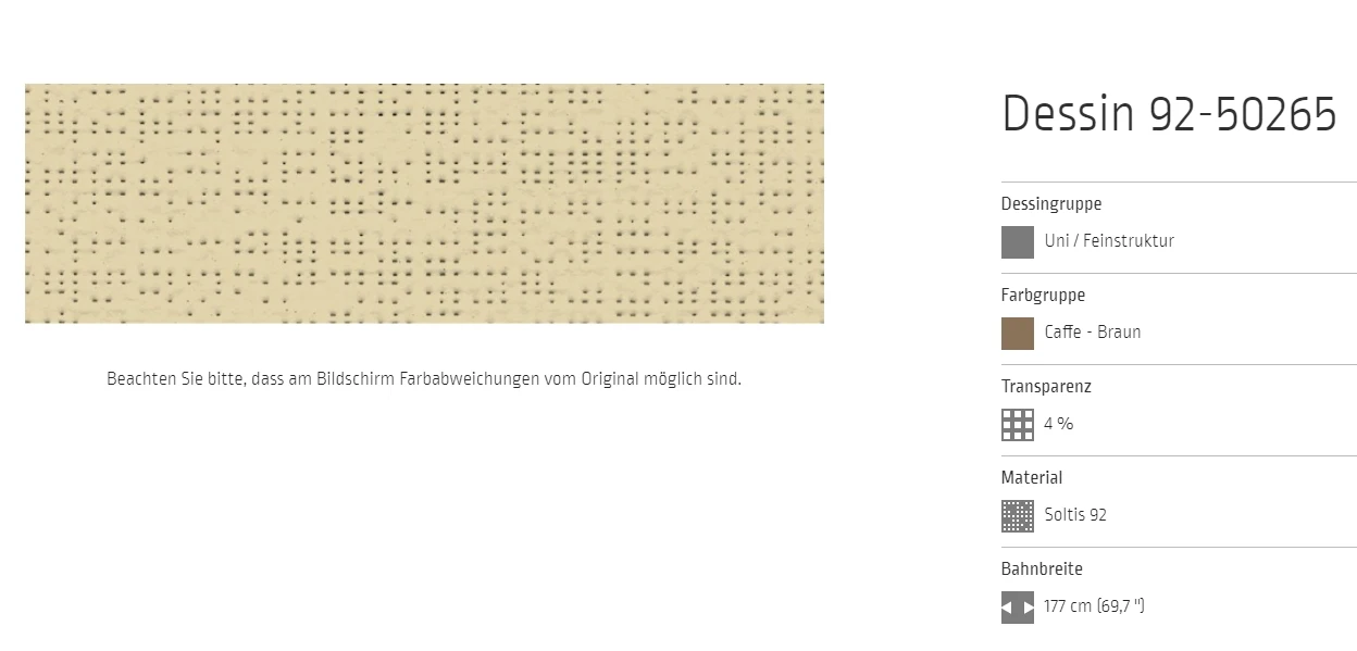 Bei allen Markisenstoffen können Unregelmäßigkeiten in der Oberflächenbeschaffenheit auftreten.