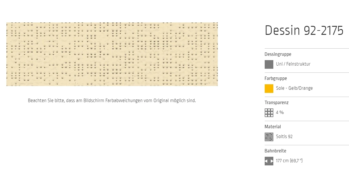 Bei allen Markisenstoffen können Unregelmäßigkeiten in der Oberflächenbeschaffenheit auftreten.